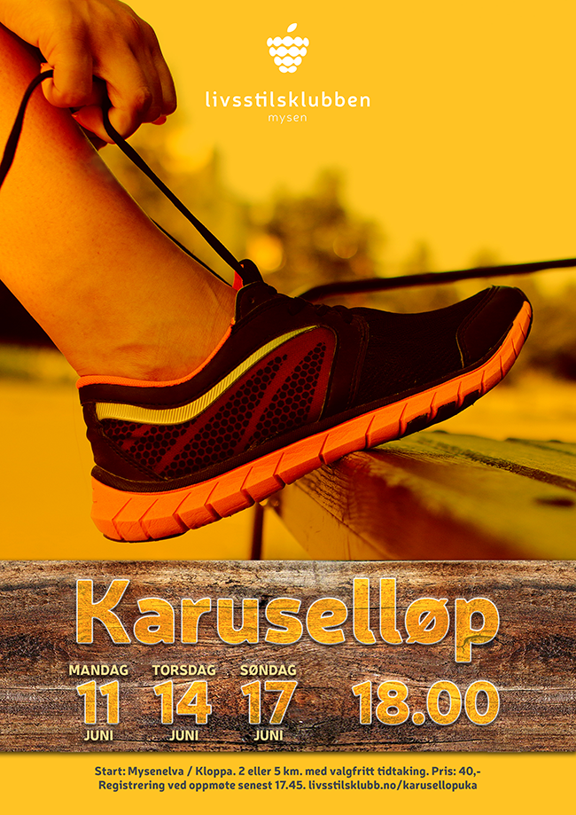Den 11., 14. og 17. juni 2018 er det klart for Karuselløp ved Mysenelva igjen. Man kan velge om man ønsker å sprinte, jogge eller gå. Vårt mål er å få flest mulig opp og ut – både små og store.